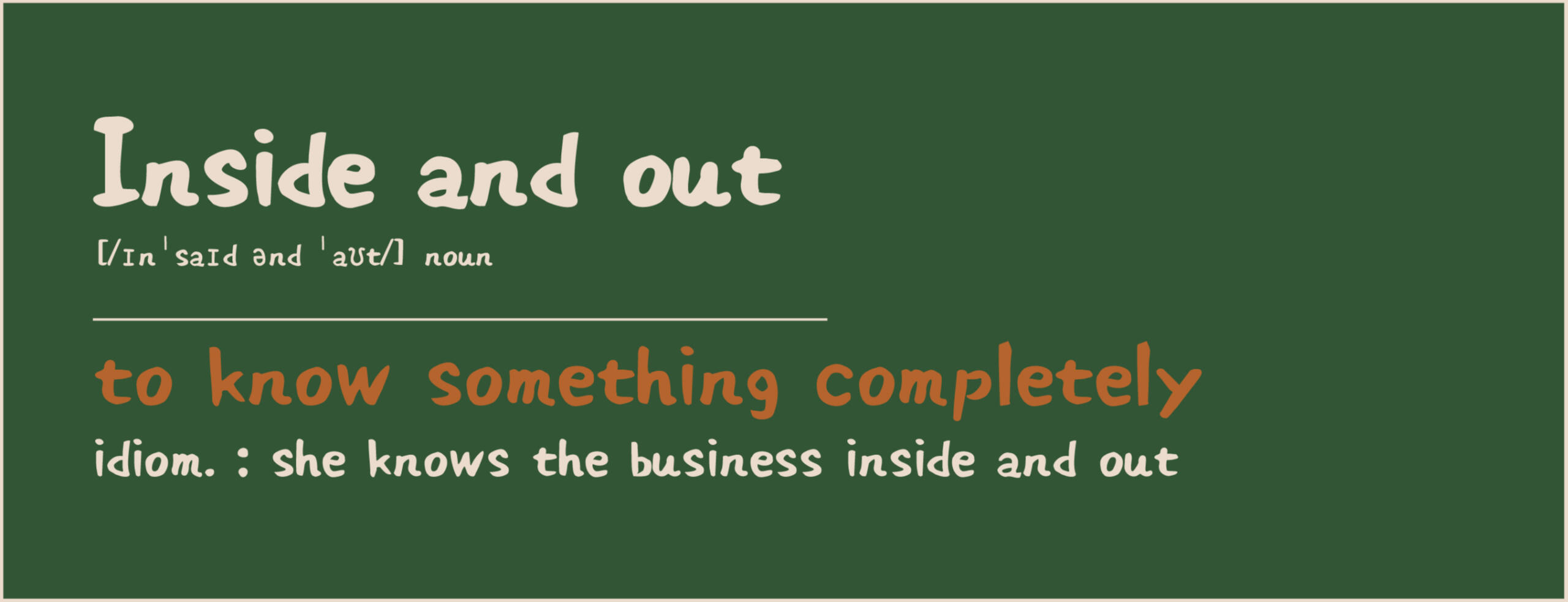 “Inside and Out" 是指從各個方面或角度來徹底地審視或理解某件事。